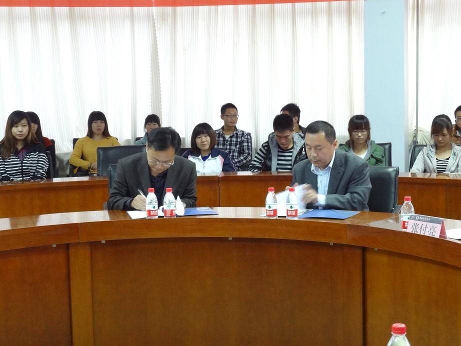 在签字仪式上,经济与管理系主任郭新伟向张付亮一行六人详细介绍了滨州学院经济与管理系的发展情况和近期来取得的成果,并表示希望借助本次签约仪式,加强与滨州青藤源大饭店的合作,进一步推动我校应用型人才的订单式培养,提高学生的整体素质,努力提高学生的就业能力,拓展就业渠道。