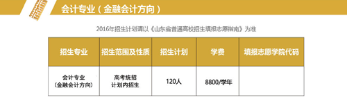 会计专业(金融会计方向)是滨州学院与国内最大的职业教育集团——达内时代科技集团联合设立,本专业采用“双师双轨制”的培养模式,由学校和达内联合培养,保障学生就业层次。