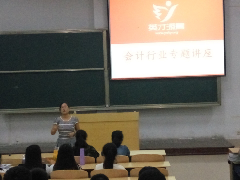 首先,张博雯用ppt的方式为大家展示介绍了达内公司的发展历程、企业文化、市场营销业务、电商文化及其发展前景。这不仅展示了达内公司深厚的企业文化史及电子商务的广阔前景,还使同学们对电商有了更清晰的认识。随后,郑燕围绕会计专题进行专业讲解,以当代社会会计行业现状和会计行业发展趋势进行就业前景以及薪资的分析,并结合自身实例向同学传授专业经验。在最后的现场提问环节中,同学们积极提问,得到企业方细致的解说和回答。
