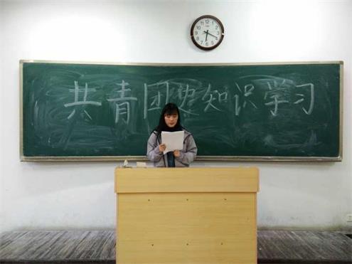本次班会旨在团结学院青年,传递正确的道德认知。活动伊始,由班主任老师向同学们讲解共青团的创建和“团旗、团徽、团歌、团员证”的产生及意义。过程中,同学们认真学习,并记录笔记,并且班主任在讲解中采用了问答的形式,使同学们对相关团知识记忆更加深刻。