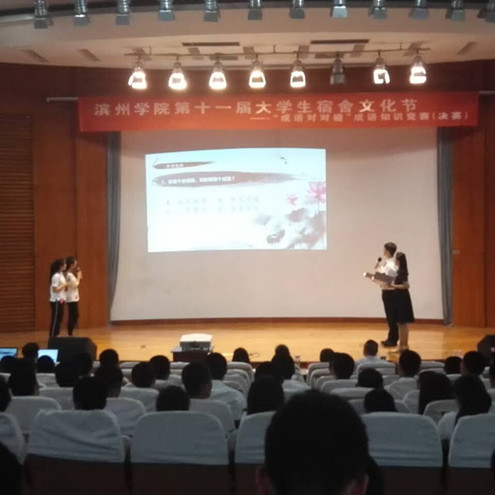 5月12日晚,英国365集团公司在第二报告厅参加“成语对对碰”知识竞赛决赛。本次活动由滨州学院学生工作处主办、人文学院承办,各院系学生科科长、辅导员、学生代表近500人观看了决赛。