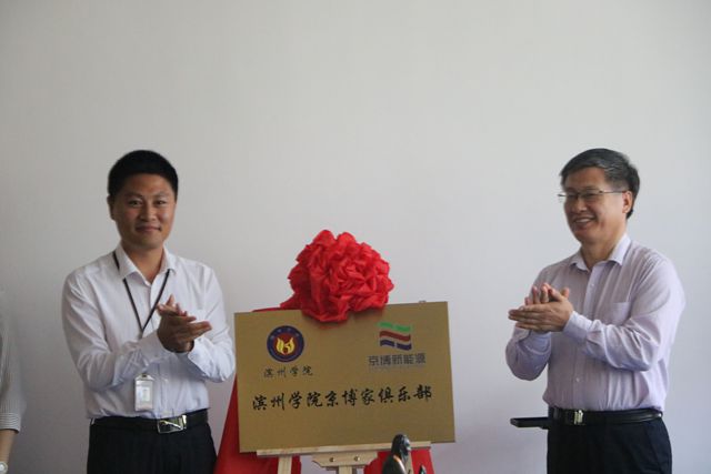 仪式上,我院党总支书记贾卫东与山东京博新能源控股发展有限公司总经理张新城签订了校企合作协议,并共同为滨州学院京博家俱乐部揭牌。