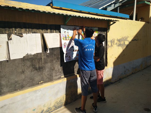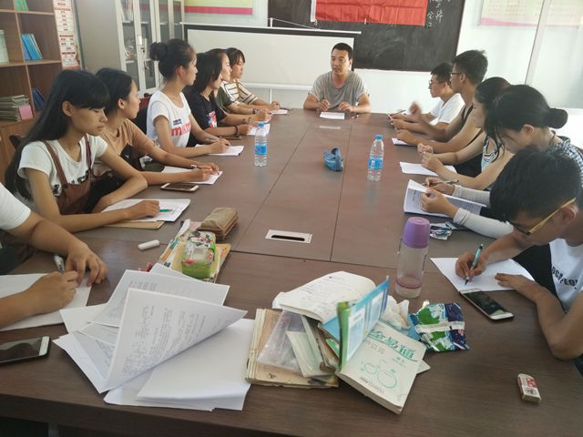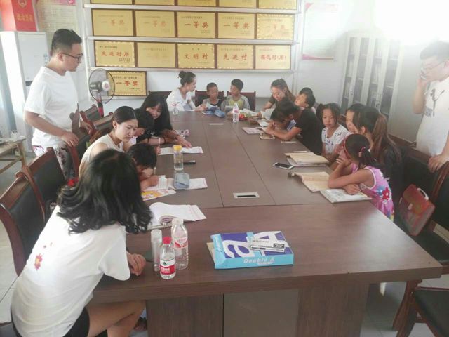 吃过早饭,队员们根据分工开展各自的工作。队长赵鲁豫带领四名队员进入田地进行实地调研,走访辛勤劳作的村民,亲身体验喷洒农药、摘豆角等农作活动,向他们询问庄稼收成等问题并发放填写调查问卷。与此同时,其余的队员们在村活动室辅导村里小学生复习课本知识,做数学题、背英语单词、读汉字。还有两位队员受村长邀请到家里教村民们练习广场舞。临近中午,队员们又一起给村民们宣传家禽传染、水污染、农业污染防治措施。上午的实践活动结束后,队员们在驻地集合,总结上午的实践活动开展情况,对在实践过程中发现的问题,队员们各抒己见,及时地将问题解决掉。随后,大家开始打扫房间,整理相关物品,为下午的实践活动开展做好准备。中午,带队的张智涛老师亲自下厨犒劳大家。下午,按照本次社会实践的安排,部分队员还是按照上午的计划认真地辅导孩子们的功课,他们通过孩子们一个个求知的眼神,充分体会到了村里的孩子们对知识的渴望。另外两位队员也是按时到达村长家里继续指导广场舞的排练。到了傍晚,村民们纷纷来到村里的小广场,队员们继续指导大家跳广场舞。