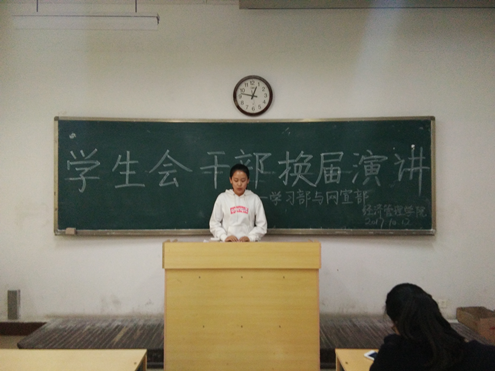 10月14日下午1时,英国365集团公司在七号教学楼举行学生会干部换届演讲。