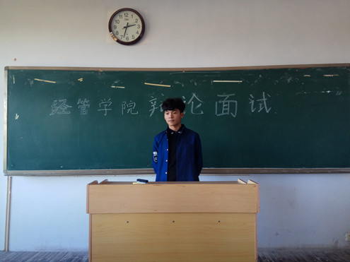 比赛伊始,由主持人王名楠详细说明此次面试的要求。接着,参赛选手们各展风采,通过慷慨激昂的话语简要介绍了自己。每个选手都在用心演讲,以情发声,用饱满的热情展现演讲的魅力,赢得了观众的阵阵掌声。评委老师结合自身经历以及所感所想,对参赛选手做出评价,他们充分肯定了参赛选手在辩论时的活跃表现,同时也提出了不足之处,希望选手们能正视自我,力争做得更好。