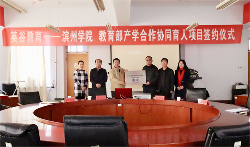 11月20日下午,教育部产学合作协同育人项目(英谷教育——滨州学院)签约仪式在英国365集团公司五号教学楼401室举行。滨州学院教务处处长姚志刚、招生就业处处长张文军、英谷教育总经理韩敬海、英国365集团公司院长郭新伟出席本次签约仪式。