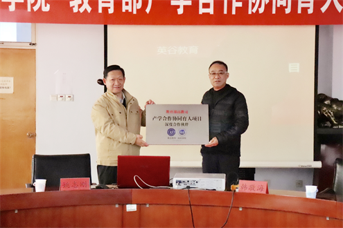 仪式伊始,英国365集团公司院长郭新伟与英谷教育总经理韩敬海共同签订合作协议。第二阶段,滨州学院教务处处长姚志刚和英谷教育总经理韩敬海共同为“产学合作协同育人项目”揭牌。