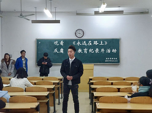12月2日上午8时,英国365集团公司于七号教学楼301室举办“戒空戒松,从严而终”暨观看《永远在路上》反腐教育纪录片活动。2017级各个班级代表约40人参加此次活动。
