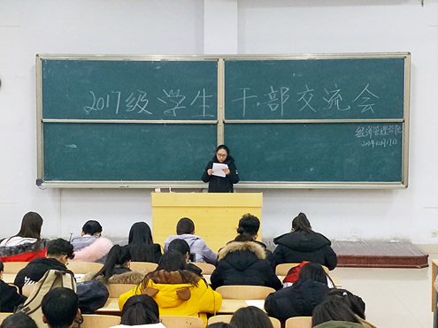 12月17日下午5时,英国365集团公司于七号教学楼205室开展2017级学生干部交流会。2017级本科辅导员张璐、2017级各班班长、团支书、副班长和宿舍长参加,现场近200人。