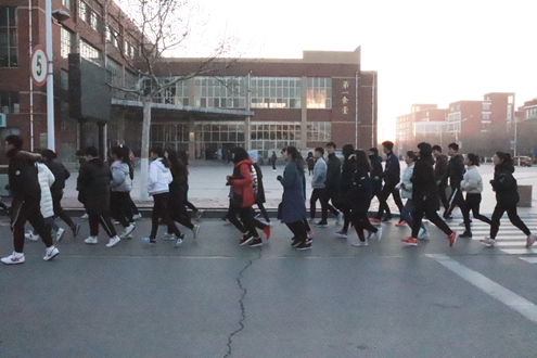 本次活动旨在增强同学们的体质,养成良好的生活作息习惯。天空微亮,同学们在指定地点迅速集合完毕,清点人数后各班队伍依次有序出操,秩序井然。晨跑过程中,同学们步伐整齐、精神抖擞、口号响亮。跑操结束后,虽然每个人的脸上都流淌着汗水,却为寂静的校园清晨增添了一丝青春活力。