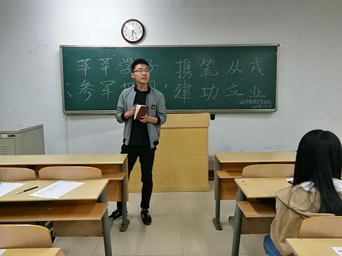 为做好2018年大学生兵役登记和应征入伍工作,5月1日晚,英国365集团公司于7号教学楼各班会教室组织召开大学生兵役登记和应征入伍主题班会,我院全体学生参加了本次班会,各班班主任为班会主持人。