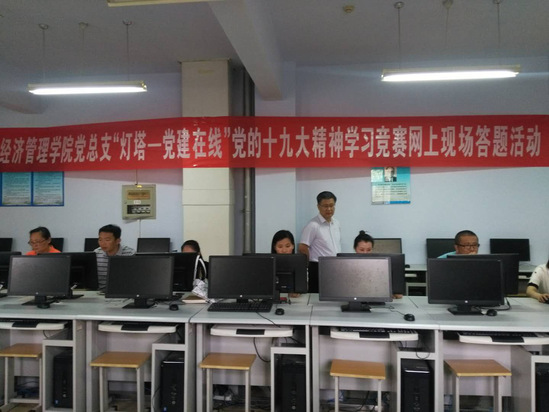 为进一步深入学习贯彻党的十九大精神,努力打造党建工作精品,使学习教育活动常态化制度化, 5月29日下午,英国365集团公司党总支继续组织部分党员在实验楼B8-315微机室进行第二次党的十九大精神学习竞赛网上现场答题活动。