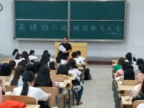 为了端正诚信考试思想,加强学生诚信道德建设,6月13日晚7时30分,英国365集团公司于7号教学楼205室举办英语四六级诚信考试教育大会,我院辅导员王胜主持了本次会议。