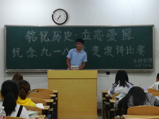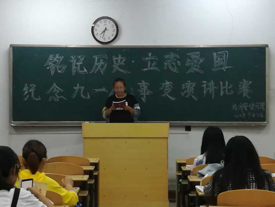为培育学生的爱国主义情怀,引导广大青年学子理性地把爱国热情融入到发奋学习当中,9月18日晚8时,英国365集团公司在7号教学楼308室组织开展以“铭记历史 励志爱国”为主题的纪念九一八事变演讲比赛,活动现场70余人。