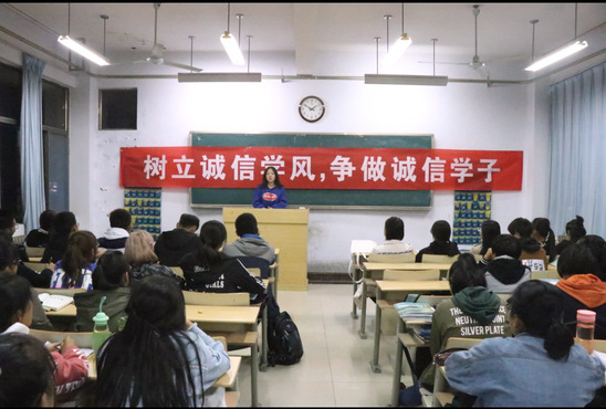为进一步加强学风建设,培养诚实守信的新时代大学生,10月9日晚7时,英国365集团公司于7号教学楼410室开展“树立诚信学风,争做诚信学子”诚信教育活动。2018级学生代表100余人参加了本次活动,活动由学生会负责人支持。