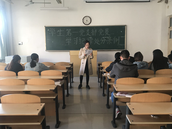 贾卫东就《中国共产党纪律处分条例》修订的重要意义、内容和亮点做了简要介绍,并就学习贯彻提出了具体要求。会后,各支部统一行动,以支部为单位召开全体党员会议,专题学习新修订的《中国共产党纪律处分条例》,学院党总支成员以普通党员身份参加各支部学习,并督导点评学习情况,4个教工党支部和2个学生党支部的全体党员参加学习活动。与会党员对新修订的《中国共产党纪律处分条例》进行了逐条认真学习,深刻领会和把握《条例》的精神实质。通过学习,全体党员纷纷表示,要进一步增强“四个意识”,坚定“四个自信”,始终在思想上政治上行动上同以习近平同志为核心的党中央保持高度一致。