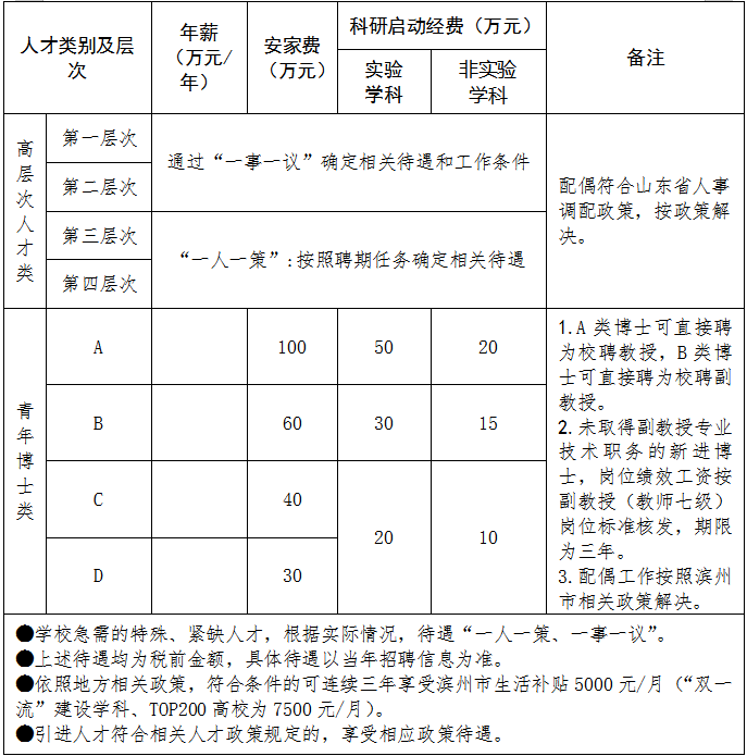 (四)引进人才可根据滨州市政策拎包免费租住人才公寓,也可入住学校周转房。