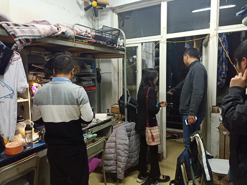 本次消防安全专项整治活动共分为三个阶段。第一阶段,由我院学生会宿管部对各学生宿舍进行排查,包括排查各类违规电器、督促同学们清理阳台杂物及宿舍内易燃易爆物品、督导同学们规范使用插排、网线等,完成我院各学生宿舍情况的初步摸排;第二阶段,由班主任通过主题班会的形式开展宿舍安全教育,普及宿舍安全知识,教育学生遵守宿舍安全管理规定,并且学生本人签署了《不私藏和使用违规器具保证书》。班会之后,各班主任带领本班班干部、宿舍安全员对本班所有宿舍进行了全面的宿舍消防安全隐患排查,彻底摸清本班宿舍存在的问题并提出整改要求;第三阶段,由我院党总支副书记何秀国带队,各年级辅导员与学生会干部分为4个小组到我院各宿舍楼展开检查,检查开始前何书记强调,所有检查人员务必认真对待,严格把关,对宿舍存在安全隐患的同学进行严肃批评教育。在检查过程中,老师们重点对宿舍内是否存有大功率违规电器、烟酒违禁物品、乱拉乱放电线插排等隐患进行排查,针对发现的问题提出整改意见,并要求及时落实,坚决消除安全隐患,对违规物品进行登记、没收,还嘱咐同学们要注意防火防盗、增强安全意识,主动上报存在的安全隐患,杜绝消防事故发生。