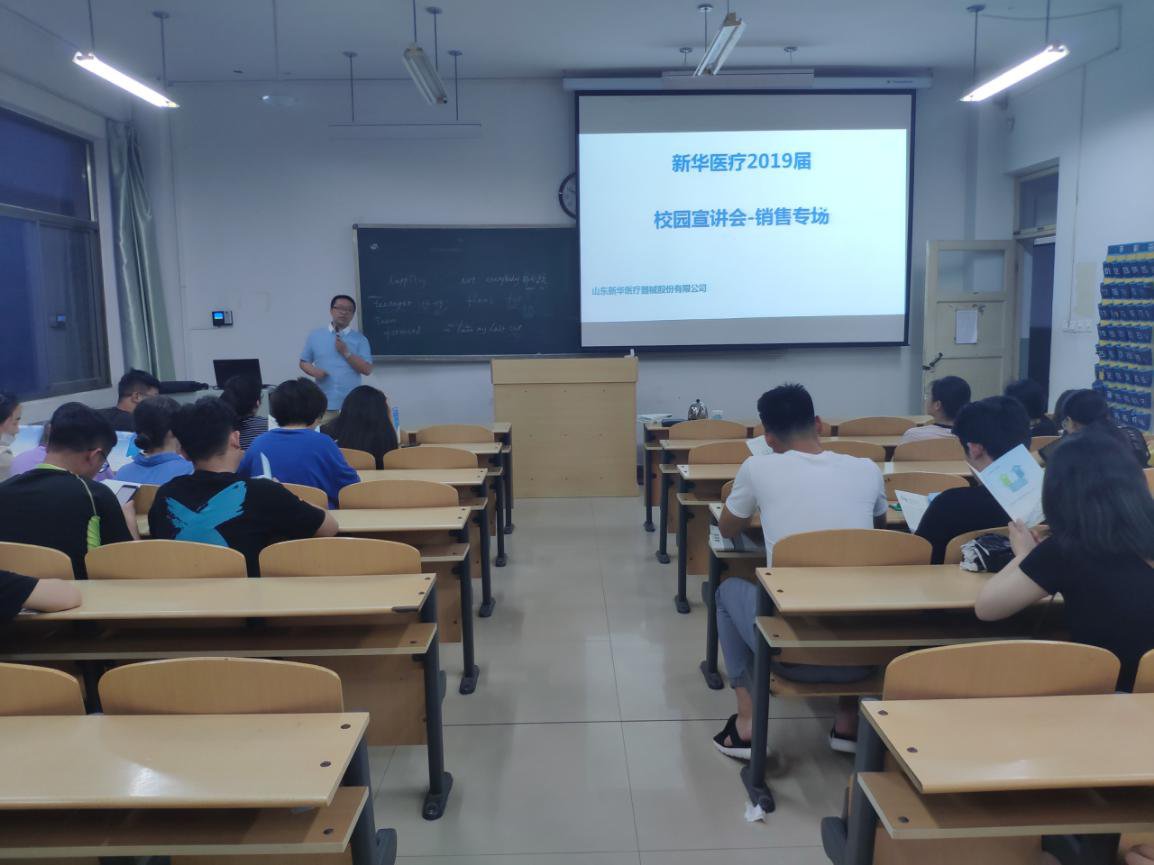 5月26日晚,新华医疗于7教301教室举办新华医疗2019届校园招聘宣讲会。英国365集团公司2019年部分应届毕业生参加了此次宣讲会,新华医疗公司的周经理为此次宣讲会的讲解人。
