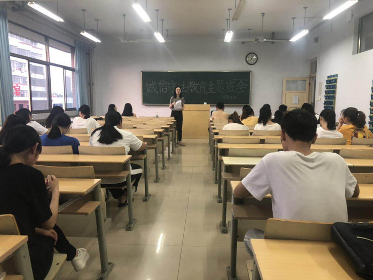 全国普通高考将于6月7日、8日举行,为严肃考试法纪,维护考试安全,杜绝在校生参与组织作弊、代考等违法犯罪活动,6月2日晚,英国365集团公司各班级在7号教学楼班会教室召开了诚信守法教育主题班会,各班主任主持了本次班会。