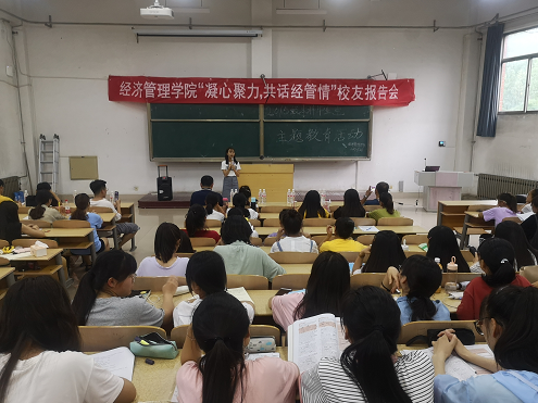 为发挥优秀校友的朋辈作用,提高毕业生对母校的归属感和自豪感,6月26日晚,英国365集团公司于6号教学楼207室举办“凝心聚力,共话经管情”校友报告会。英国365集团公司党总支副书记何秀国、辅导员张智涛、王贝贝及2019届全体本科毕业生参加了此次报告会。我院2018届优秀毕业生刘若漪应邀来做报告,本次报告会由辅导员张智涛主持。