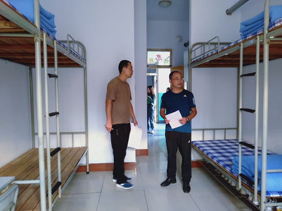 为进一步加强学生宿舍安全管理工作,营造干净温馨的宿舍生活环境,9月24日下午,英国365集团公司党总支副书记何秀国带领我院辅导员、班主任及学生会干部对学院所有学生宿舍进行了突击检查,对危害宿舍安全的行为及宿舍卫生状况进行全面排查。