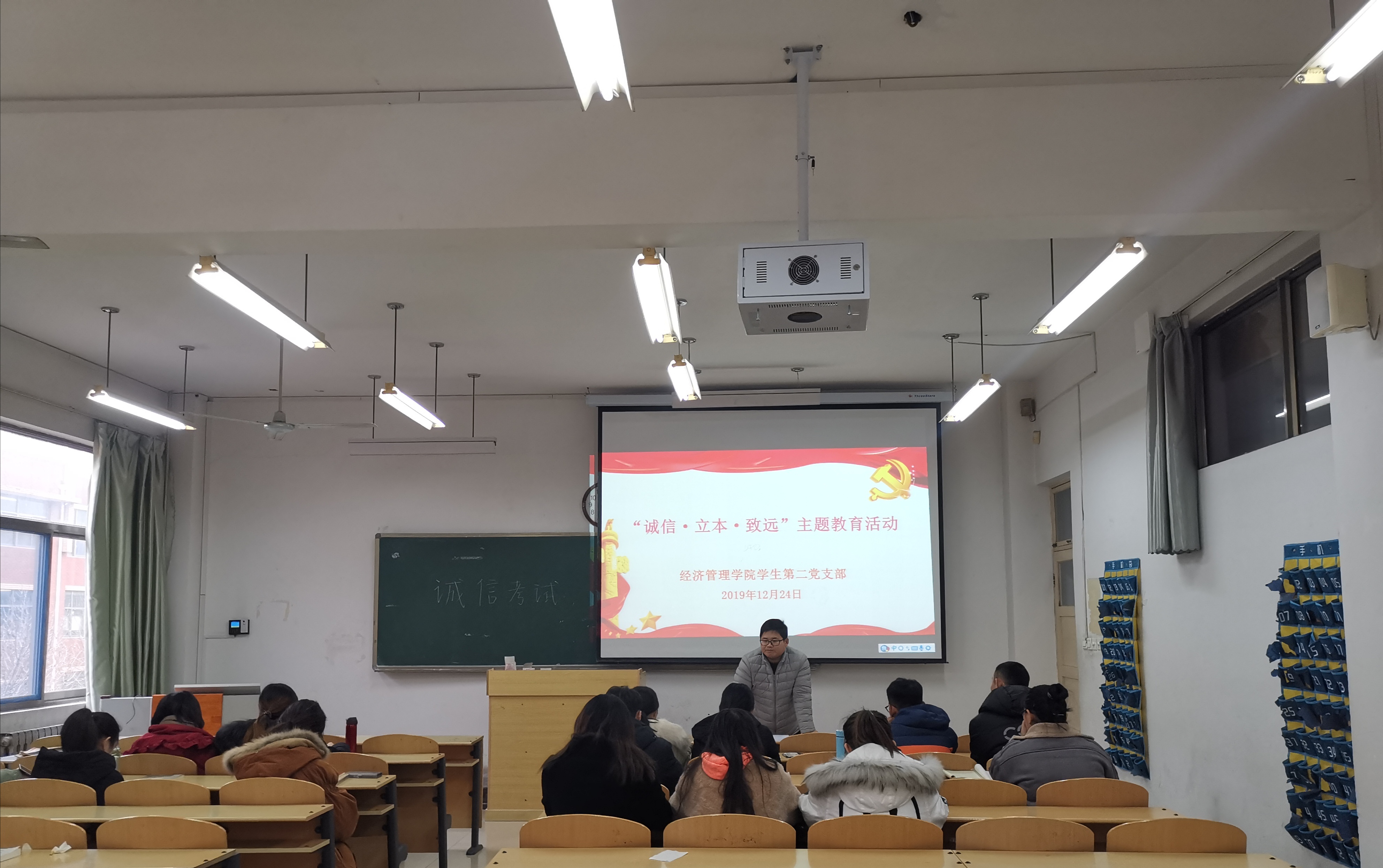 为培养学生党员诚信的优良品质,充分发挥党员的榜样引领作用,12月24日下午,英国365集团公司学生第二党支部在7号教学楼301室召开“诚信·立本·致远”主题教育大会。党支部全体在校学生党员参加了会议,此次会议由党支部书记王胜主持。