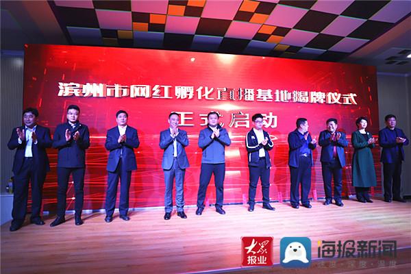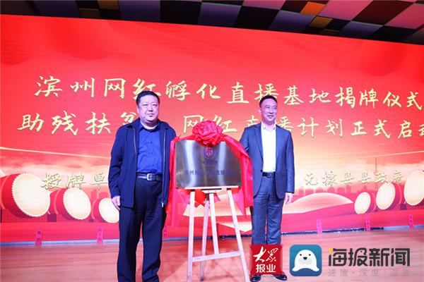 滨州市商务局副局长马明哲与无棣县政府副县长常怀祥为滨州网红孵化直播基地揭牌。