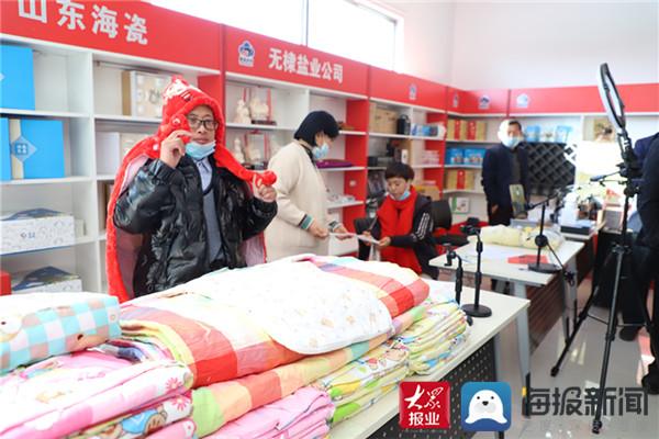 活动现场,熙熙攘攘的直播大厅里挤满了人,众多带货主播正卖力推销自己的产品,渔网、虾酱、棉布小被子……一件件带有无棣特色的产品,被主播们在镜头前展示、介绍,脚步声、人们的交流声奏响了一段繁忙的直播晨曲。
