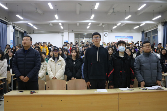 大会在激扬的团歌声中拉开帷幕。会上,郭潇颖老师对新当选的学生干部表示祝贺,并就学生干部的使命与担当、如何做好学生干部以及学生干部如何在工作过程中如何提升自身能力等问题进行了深刻分析与阐述。随后,廉潘红老师对各班团支部、班委会提出工作要求并安排部署了近期工作,他鼓励班团干部不忘竞选初心,加强自我修为,做好学生表率。之后,张智涛老师进行总结发言,他重点强调了奉献精神和责任意识,身为学生干部,要以为同学服务为宗旨,勇担责任使命,同时必须强化学习意识,勤奋学习,全方位提升自己,充实丰富自己的大学生活。会议最后,全体同学起立,进行了庄严肃穆的宣誓。