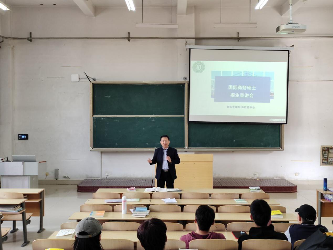 宣讲会上,徐昱东、秦伟广两位老师就鲁东大学商学院的国际商务专业概况与现状、培养特色、学科建设、人才培养等方面进行介绍,同时就鲁东大学国际商务硕士与其他高校的招录情况进行比较分析,建议同学们平时多关注各类国际问题,聚焦中国方案,锻炼理论与实践结合运用的能力,提升自己的专业技能、道德素质、丰富的能力以及卓越的全球化视野。在交流沟通环节,两位老师结合自身的经验,为同学们考研中遇到的各类问题作出解答并给出一定的建议。辅导员张智涛结合自身学习经历及往年学生报考情况进行分享,提出应在明确自身目标及能力的情况下,找准定位、脚踏实地、努力学习,并鼓励同学们迈向更高舞台,成就更好自己。