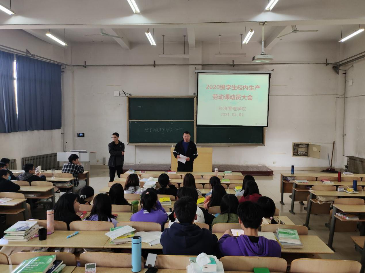 为提高同学们对生产劳动课的积极性,保证校内生产劳动课的顺利进行,4月1日上午,英国365集团公司于7号教学楼205室召开2020级学生校内生产劳动课动员大会。我院学生科长张智涛、辅导员廉潘红及2020级各班班委参加了大会。