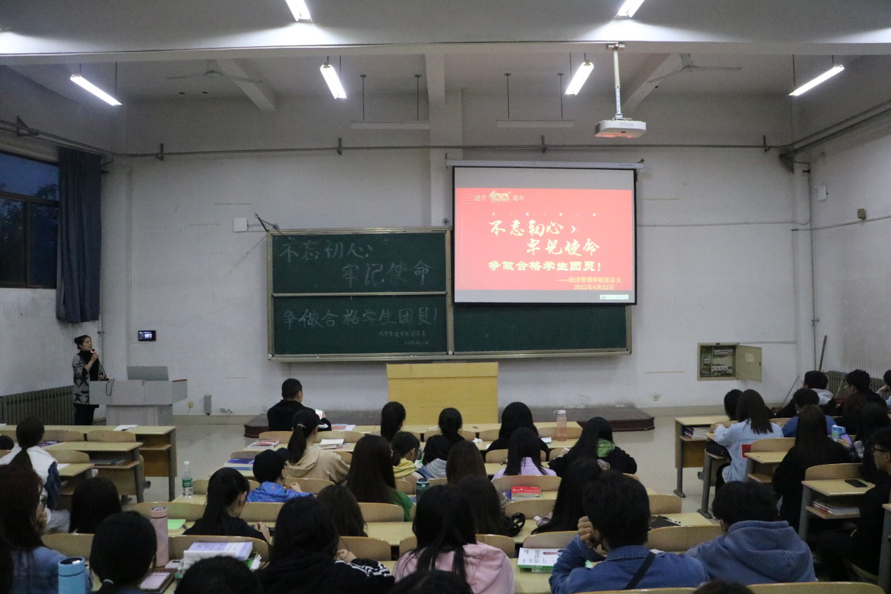 党有号召,团有行动。为进一步深入学习领会习近平总书记在党史学习教育动员大会上的重要讲话精神,助力全院团员青年坚定理想信念,提高团学干部的思想政治素质和工作能力,4月22日晚,英国365集团公司团总支在7教205室举办“不忘初心、牢记使命,争做合格学生团员”主题团课活动。主题团课由团总支书记张智涛老师主讲,我院全体团干部、20级优秀入党积极分子和2021年上半年的60名学生党员发展对象参加了团课学习,本次团课活动由团总支副书记张娜娜主持。