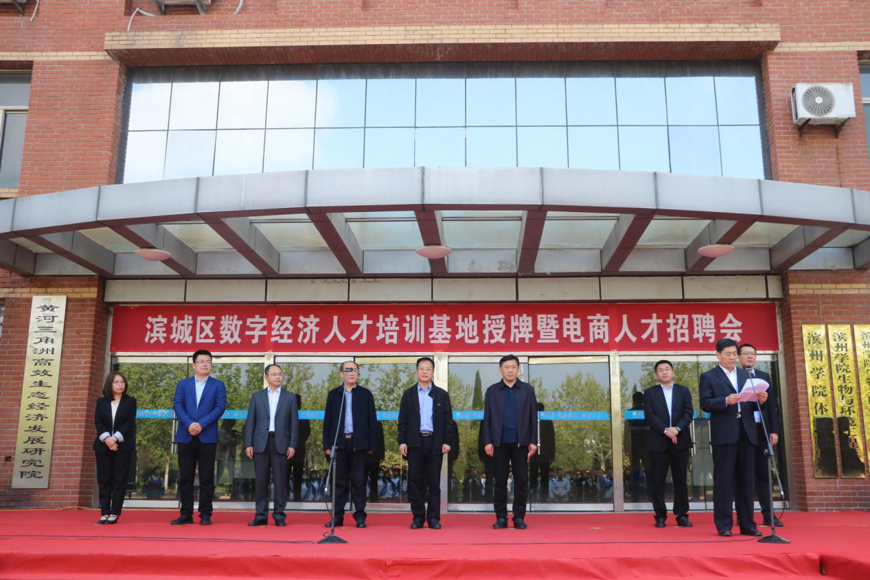 随后,滨州学院党委委员、副校长郭新伟致辞。他指出,深化产教融合,促进教育链、人才链与产业链、创新链有机衔接,是当前推进人力资源供给侧结构性改革的迫切要求。我校始终秉持“扎根滨州、服务滨州”的办学理念,面对当前经济社会发展对电子商务人才的迫切需求,不断加强实践教学建设,着力培养应用型人才,积极开展产、学、研协同育人工程。他希望,通过滨城区政府搭台,多方加强沟通,强强联合,优势互补,打造校内电商实训基地,搭建社会服务平台,服务区域经济产业发展;发挥我校人才优势、科技优势、平台优势、资源优势,不断丰富校企合作形式、深度融入滨州发展大局,共同为滨城区数字经济产业培养基础实、能力强、素质高、适应快,具备专业技能和创新创业能力并能应对未来挑战的高级应用型专门人才,为促进滨州市产教融合型、实业创新型“双型”城市建设作出积极贡献。