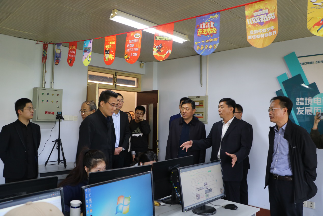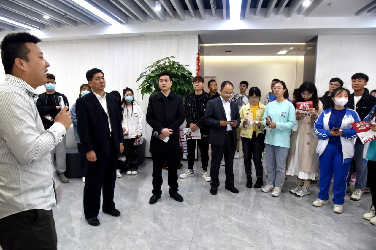 仪式结束后,与会人员走进实验楼,参观英国365集团公司数字经济产业学院电子商务实训场景。同时,参会的企业负责人到电商培训教室与参训学生进行精准对接。
