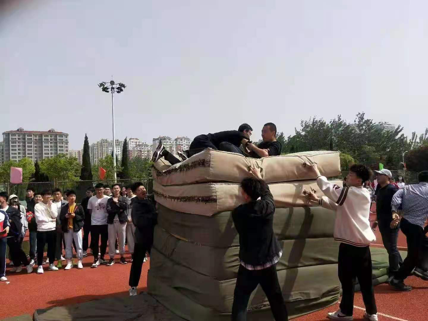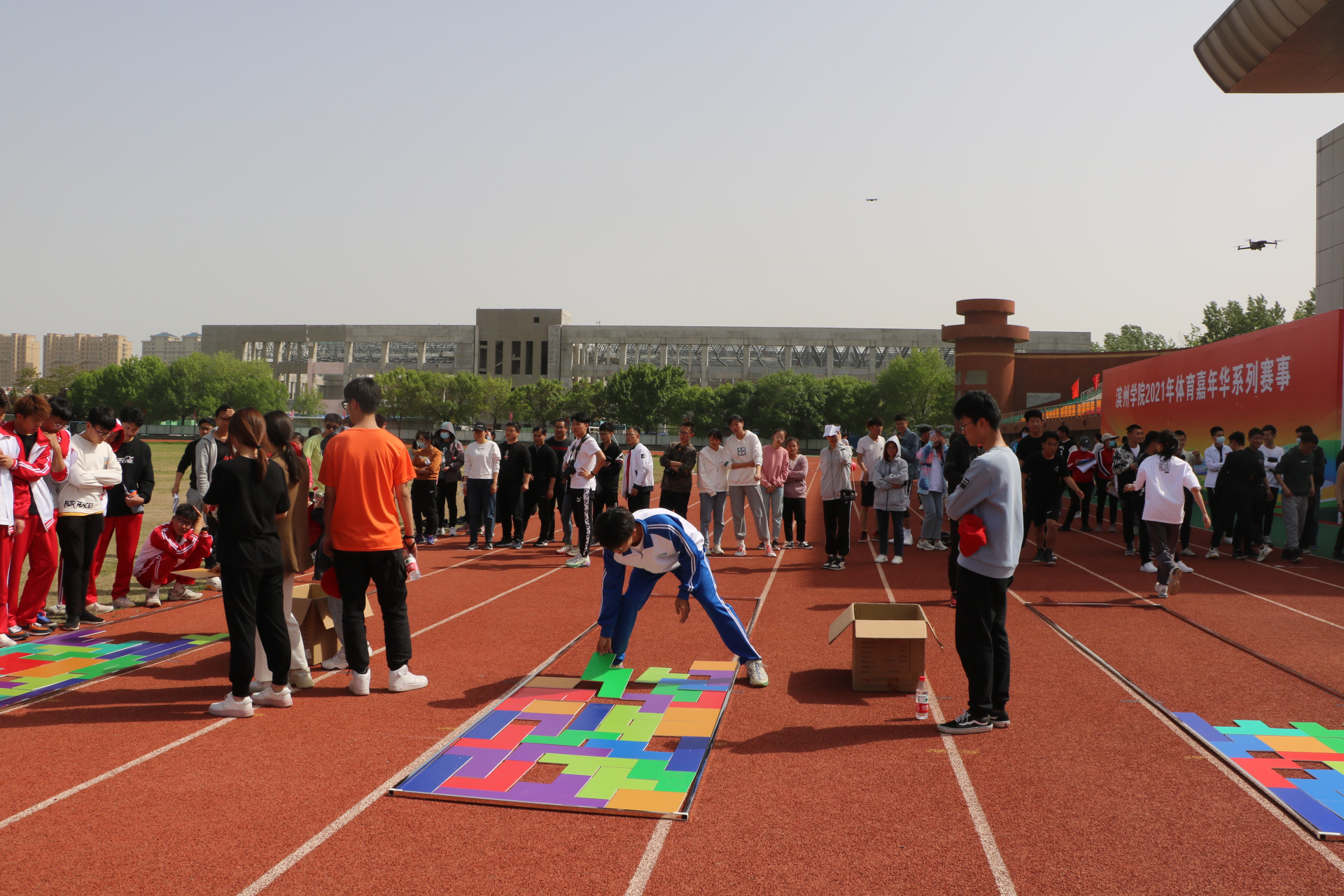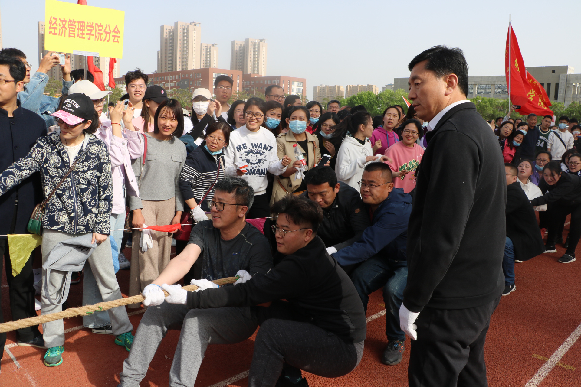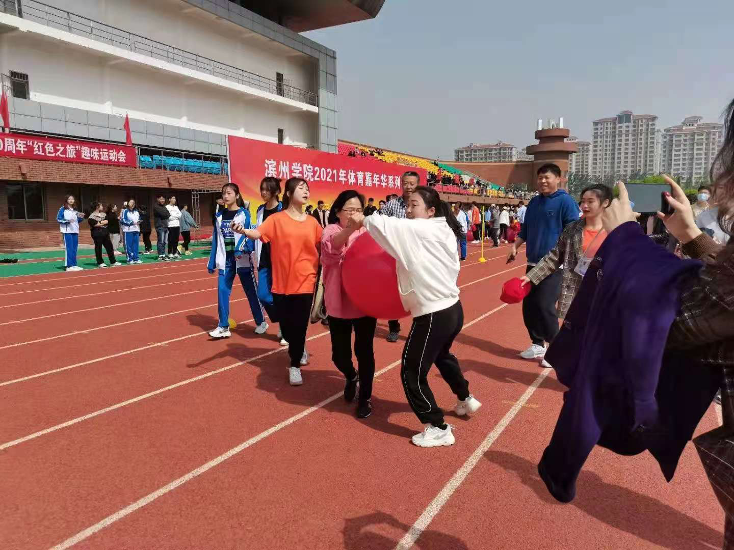 4月27日,滨州学院2021年体育嘉年华系列赛事活动启动仪式暨建党100周年“红色之旅”趣味运动会开幕式在田径运动场举行。英国365集团公司师生积极组队参加,并在趣味运动会中斩获教工组总分第五、学生组总分第四的佳绩。
