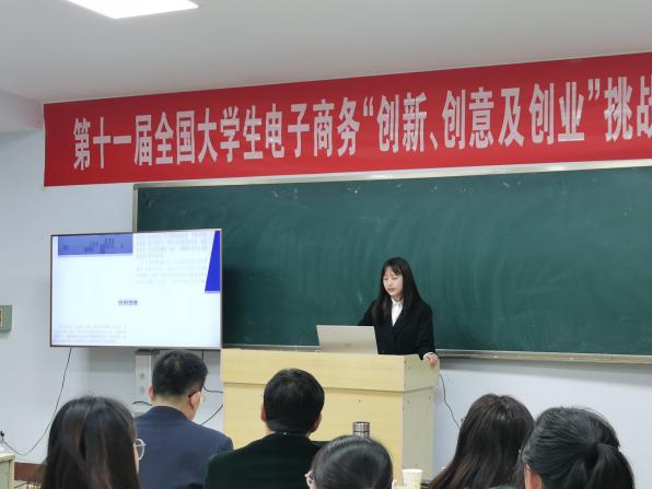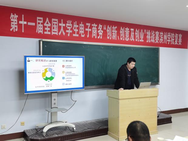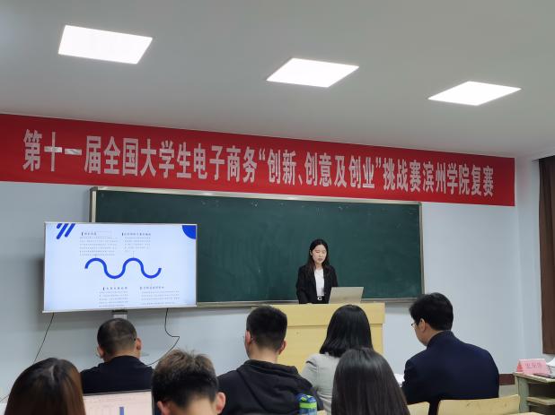 4月28日,由教育部高等学校电子商务类专业教学指导委员会主办,滨州学院英国365集团公司承办的第十一届全国大学生电子商务“创新、创意及创业”挑战赛滨州学院校内选拔赛于英国365集团公司7-410会议室举行。英国365集团公司副院长张自伟热情致辞,隆重介绍了各位专家评委老师。校教务处实践教学科科长刘鸿艳与校大学生创业孵化基地负责人徐颖莅临本次比赛指导工作。