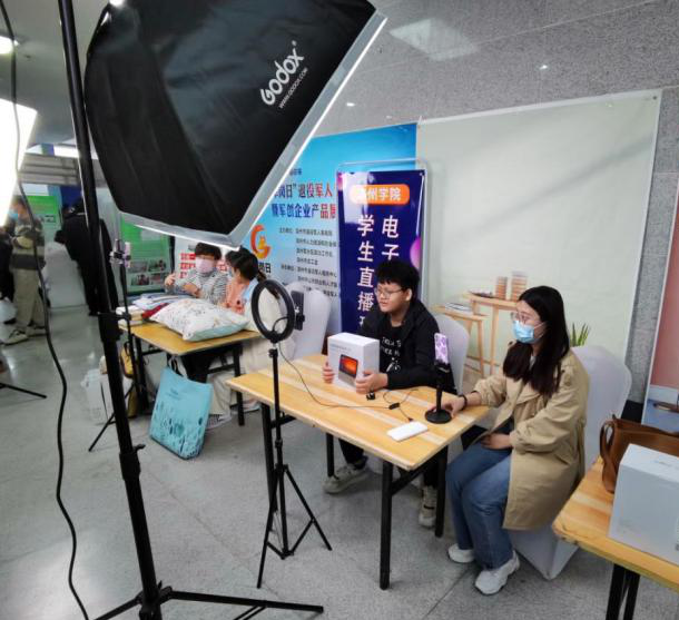 我校数字经济产业学院受邀参加本场招聘会,电子商务产业学生分别对华纺股份有限公司有关产品、京东平台电子产品展开现场直播。