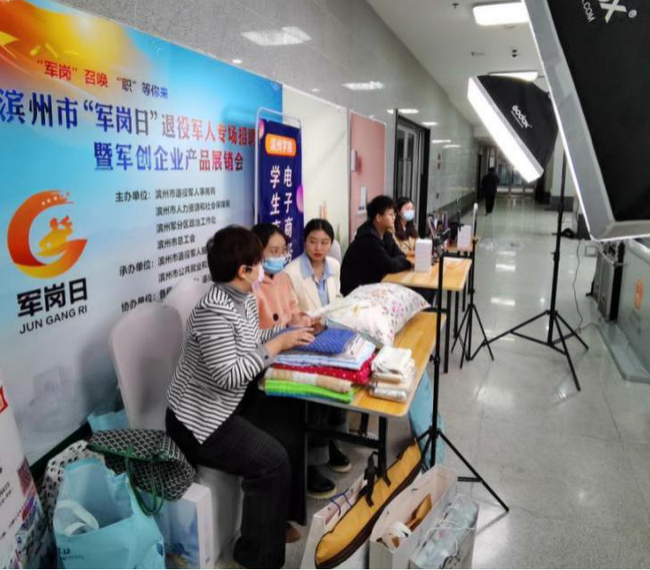 4月30日上午,由滨州市退役军人事务局、滨州市人力资源和社会保障局、滨州军分区政治工作处和滨州市总工会联合承办的山东省退役军人“军岗日”专场招聘活动暨军创企业产品展销会在滨州市总工会一楼大厅启动。滨州市副市长、市公安局局长赵永生出席活动并致辞。市工人文化宫党支部书记孙战洪、滨州学院英国365集团公司党总支书记崔玉海、继续教育学院社区教育科副科长蔡传金参加活动。