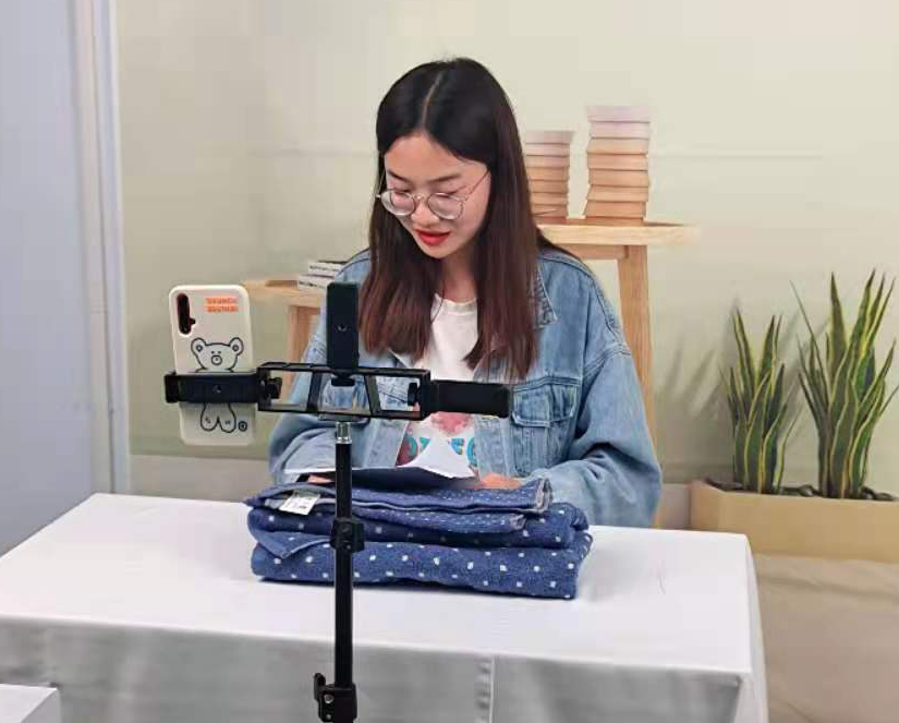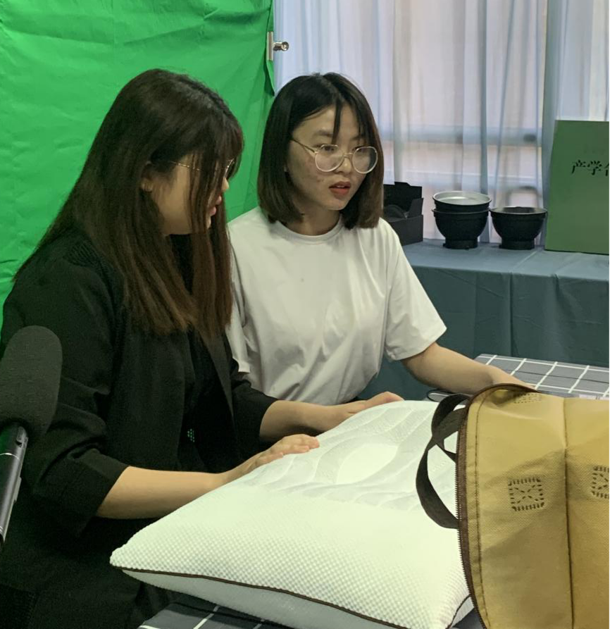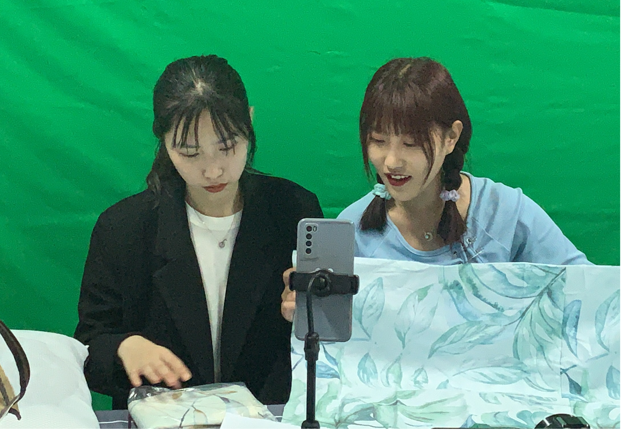 电子商务专业学生利用华纺股份有限公司产品进行直播大赛赛前训练
