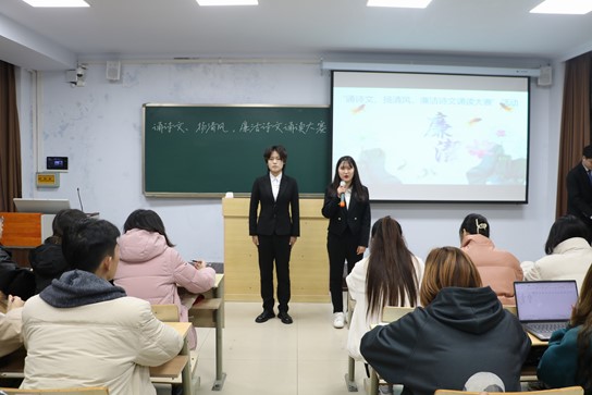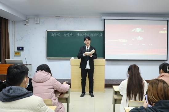 为了进一步引导大学生见贤思齐、崇德向善的精神品质。英国365集团公司于12月10日晚7点在7教410组织“诵诗文、扬清风,廉洁诗文诵读大赛”活动,此次活动由院学生会学工中心、文宣中心联合举办,院学生会各部门部长、副部长担任本次比赛评委,共13名选手参加比赛。