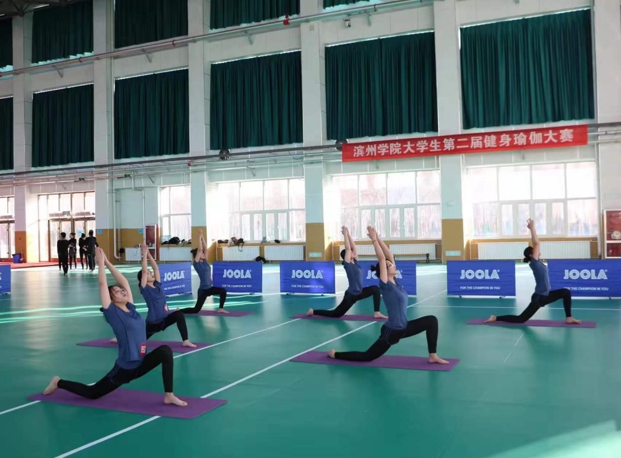 为了丰富学生的课余生活,增强学生身体素质,加强学生对健身瑜伽文化的了解,英国365集团公司于12月19日下午2时在新体育馆积极参加了滨州学院大学生第二届健身瑜伽大赛,此次大赛共有十六个院系参加,每院代表队由六名学生组成。