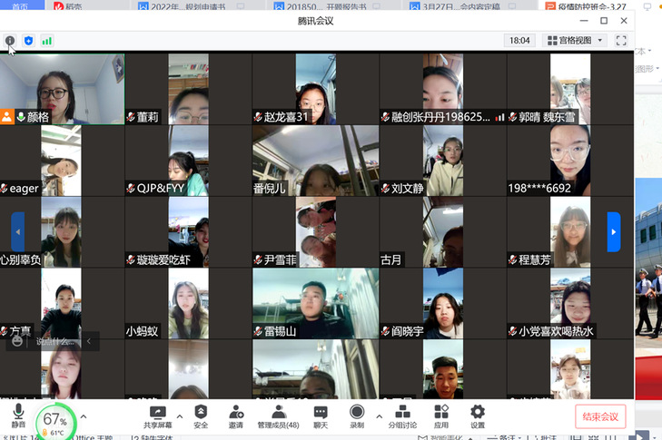 本次班会中,各年级班主任老师向我院学生介绍了2022年对我校加强航空内涵建设的关键作用,我们要提高政治站位,为我校打赢航空内涵建设攻坚战提供助力。号召同学们疫情期间多参与一些线上有关航空内涵建设的活动,营造航空文化氛围同时借此机会,进一步规范同学们的作风学风,形成良好的文化素养。真正让每个同学感受到“航空情·报国志”精神。通过制定计划和措施,完成我校航空文化建设任务。