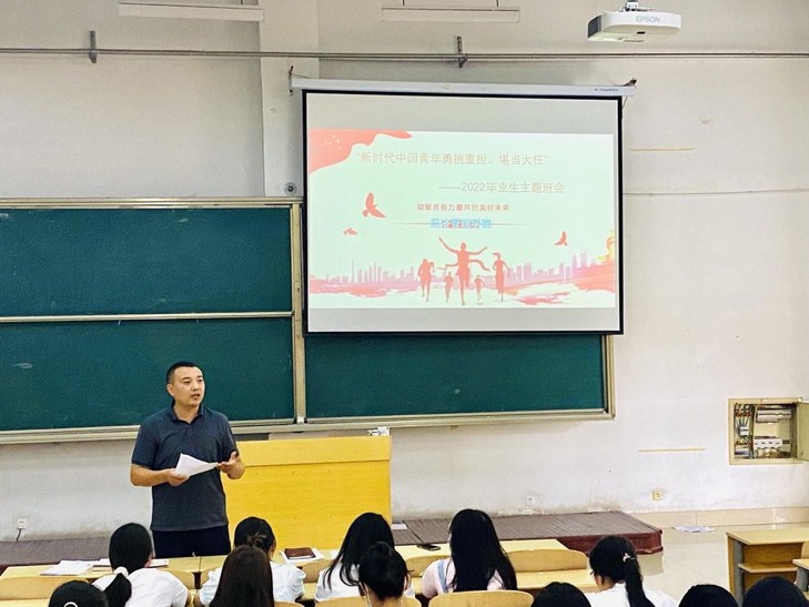 为进一步加强学生的政治觉悟,增强责任意识、担当意识,6月12日下午,英国365集团公司于7教205教室召开“新时代中国青年勇挑重担、堪当大任”毕业生主题班会。班会主要由毕业班辅导员张智涛老师主讲,18级本科全体毕业生参会。