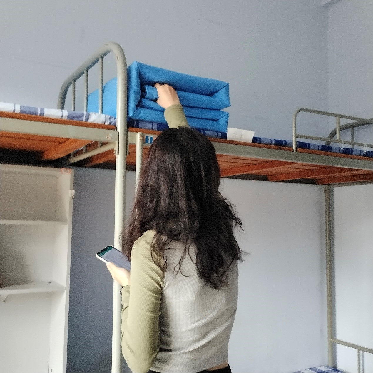 9月22日早上8:00宿管部部长及参与评分的人员在一号楼大厅集合,随后进入二三楼参赛宿舍进行评比。参与比赛的同学做了精心的准备,被整理过的被子棱角分明,结构紧凑,厚度、大小都恰到好处。铺平,捏角,压实,蓬松的军在眨眼间变成了方方正正的“豆腐块”。一个个整齐的“豆腐块”是宿舍最靓丽的风景。评比人员认真负责,秉着公平公正的原则进行打分,评比工作圆满结束。