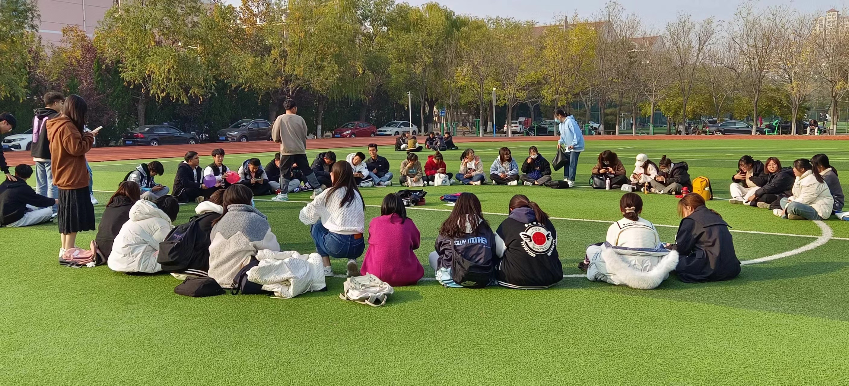 活动之初,同学们进行热身运动,活动中同学们积极参与、互动配合、青春洋溢,锤炼了积极的心态,增进了同学间的情谊,充分的展现了新时代下大学生良好的精神风貌。团建活动现场的热闹和同学们愉快的心情在冬日的暖阳下愈加凸显,同学们团结一心,通过团建活动形成积极向上的班级氛围,树立相互配合、相互支持的团队精神和整体意识,营造温馨、和谐的班级氛围。同学们纷纷表示,户外素质拓展活动能够使同学们之间产生默契,使同学之间彼此迈出一小步,关系靠近一大步。活动最后,全体成员进行拍照留念,给这难忘的团建活动留下了珍贵的记忆。