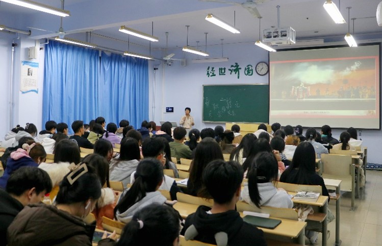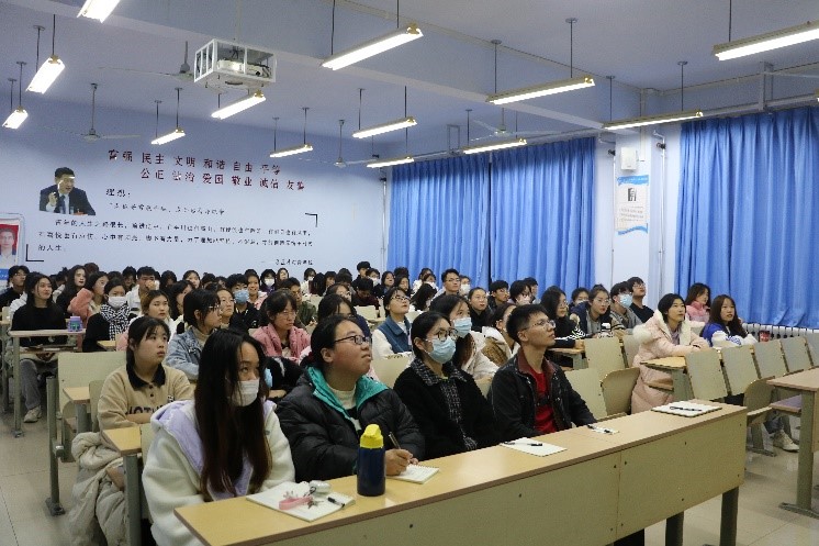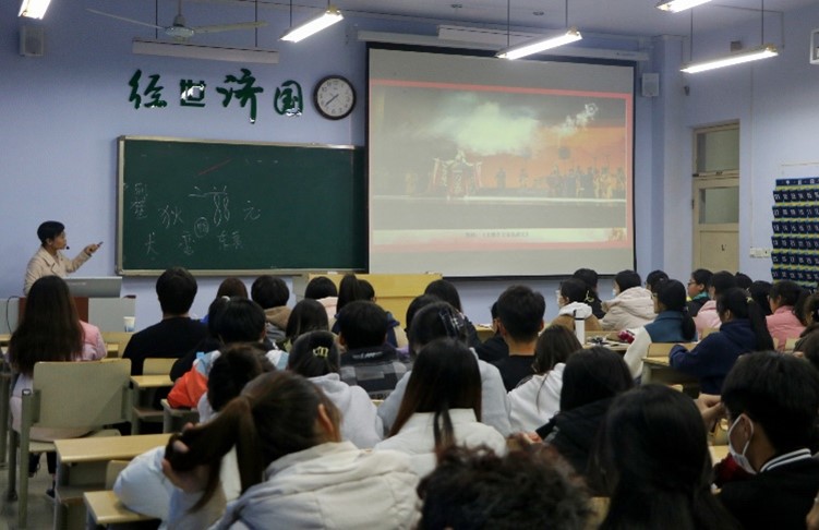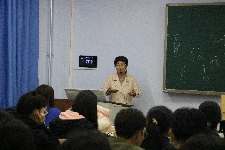 为了提高学生的参与度,赵贞老师又讲述了中国文字的起源。与大家一起讨论文字的演变史,让同学积极参与到文字猜读中。从秦朝的小篆开始一直讲到象形文字的演变,说明了中国是唯一一个经历了几千年的历史并且文字和文化是可以追根溯源的。以此来增加文化的自尊自信,也加深了同学们对党的二十大精神的理解。