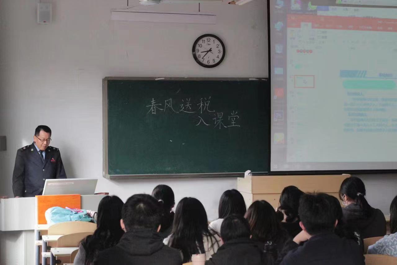 活动伊始,由陈浩然老师主持,向同学们介绍了参加活动的税务老师,并表示此次教育活动开展的目的在于引导学生树立知税、学税、守税的理念,扣好税法遵从的“第一粒扣子”,燃起同学们对未来职业生涯的激情。活动过程中,刘纪峰、王玉月两位老师就我国个税的相关政策及目前政府实行“便民办税春风”行动相关内容分别对同学们展开介绍。税务局老师们不仅专业地向同学们讲解税务知识,还对同学们提出的疑惑进行了耐心解答。