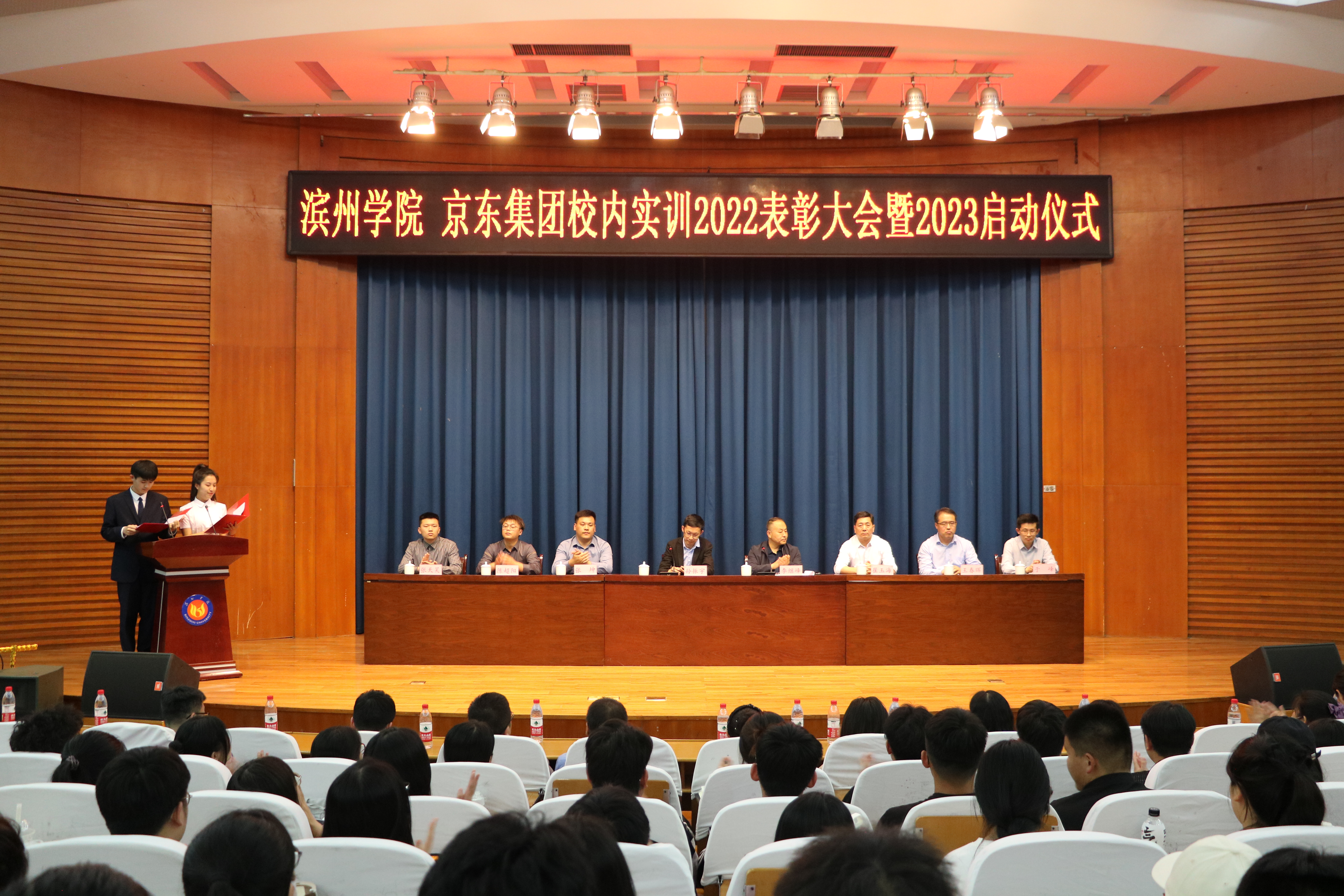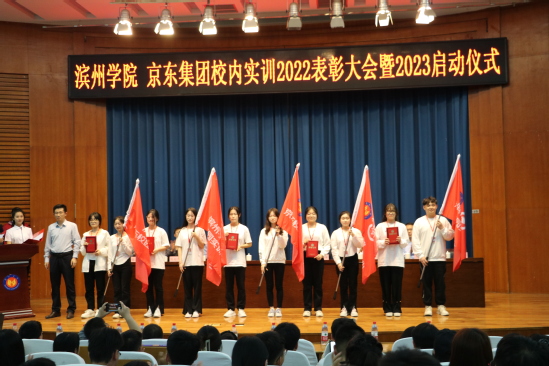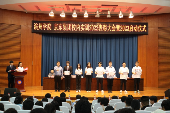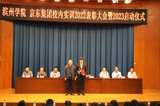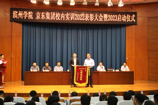 4月19日,我院与京东集团校内实训2022年表彰大会暨2023年启动仪式在明德报告厅举行。我校党委委员、纪委书记、省监委驻滨州学院监察专员李继峰出席会议并致辞。江苏京东信息技术有限公司众客服运营部负责人孙振宇,党委委员、校企合作部负责人张坤,众客服运营部SOHO运营部负责人陈超阳,众客服运营部华东战区校园二部负责人张天昊一行四人,英国365集团公司党总支书记崔玉海,院长王春晖,党总支副书记于峰,挂职副院长徐超,电子商务教研室老师、京东驻校工作人员、全体辅导员、部分班主任老师及学生代表500余人参加会议。