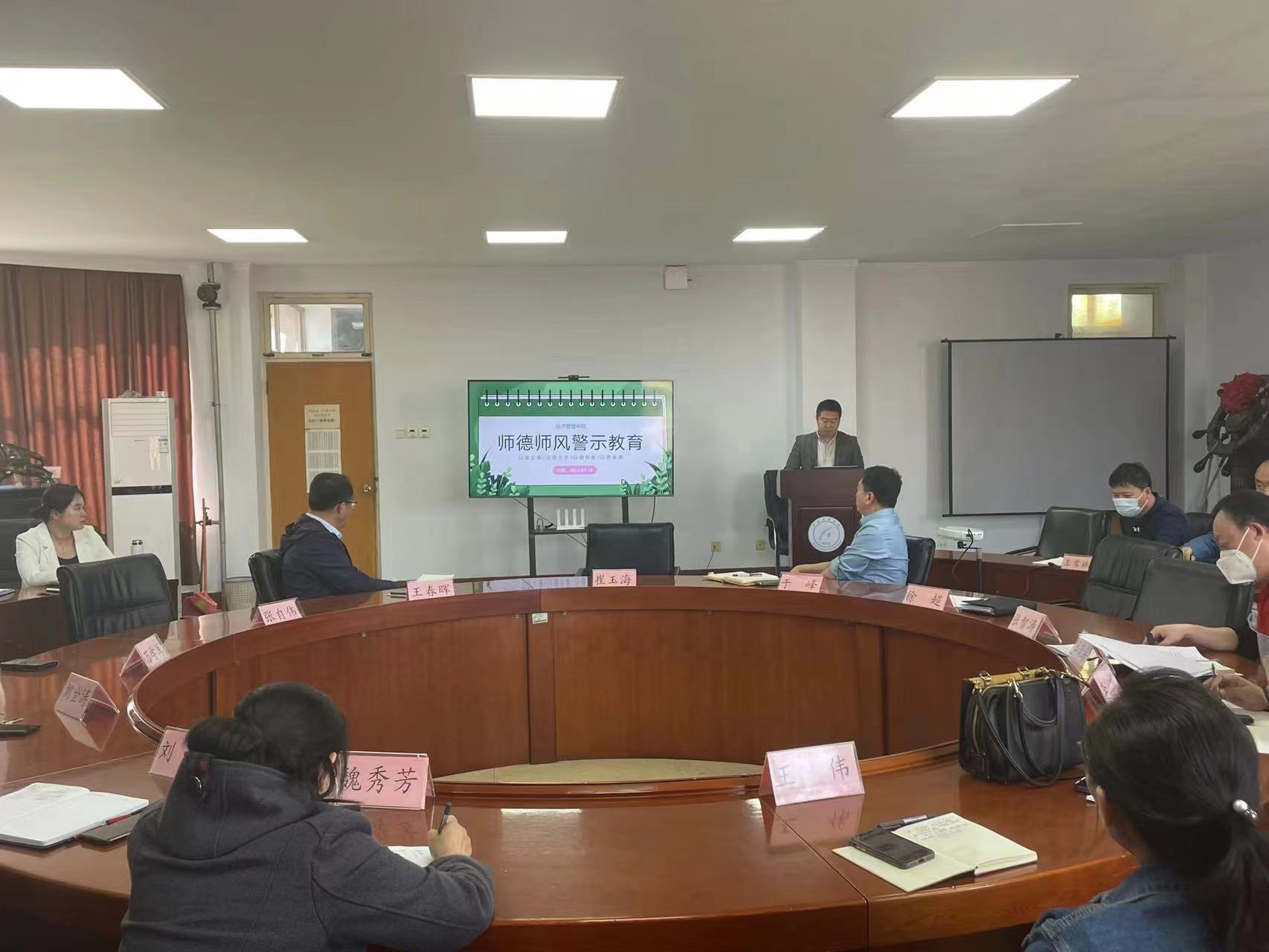 为进一步推进学校师德师风建设,警示教育全体教师知敬畏、守底线、明师德,筑牢老师们思想道德防线,4月18日,英国365集团公司于5#401室召开师德师风典型案例警示教育学习大会,会议由英国365集团公司院长王春晖主持召开,挂职副院长徐超作会议报告。